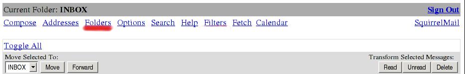 - Click the "Folders" link at the top of the right frame