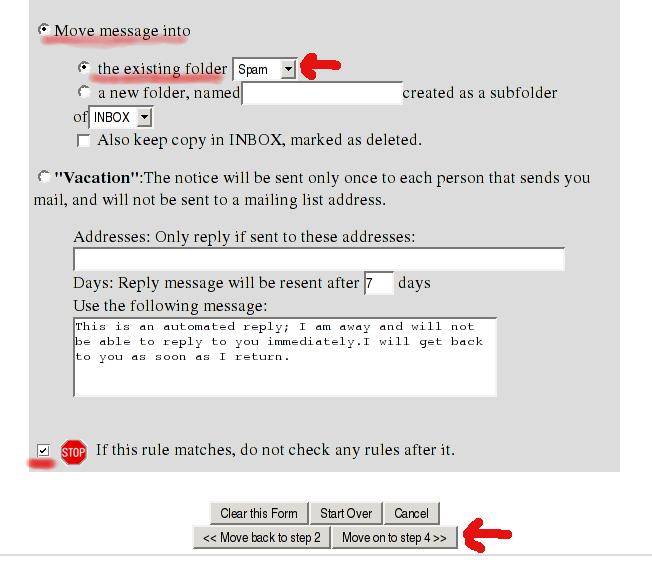 - Select the "Move message into" radio button (left side/center of page)